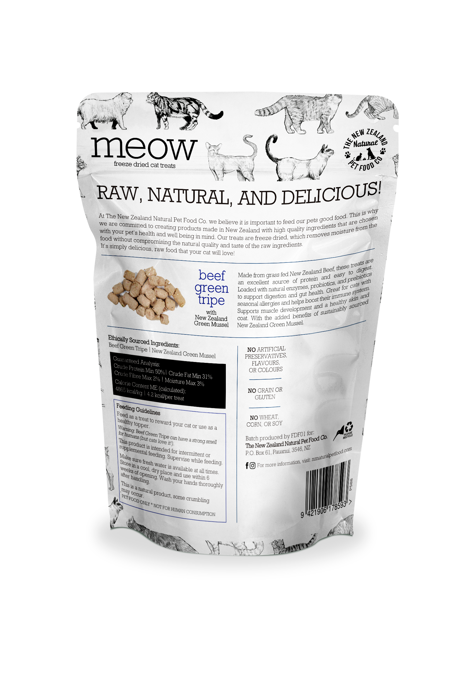 The New Zealand Natural Pet Food Co - Meow Beef Green Tripe Treats for Cats 1.4oz
