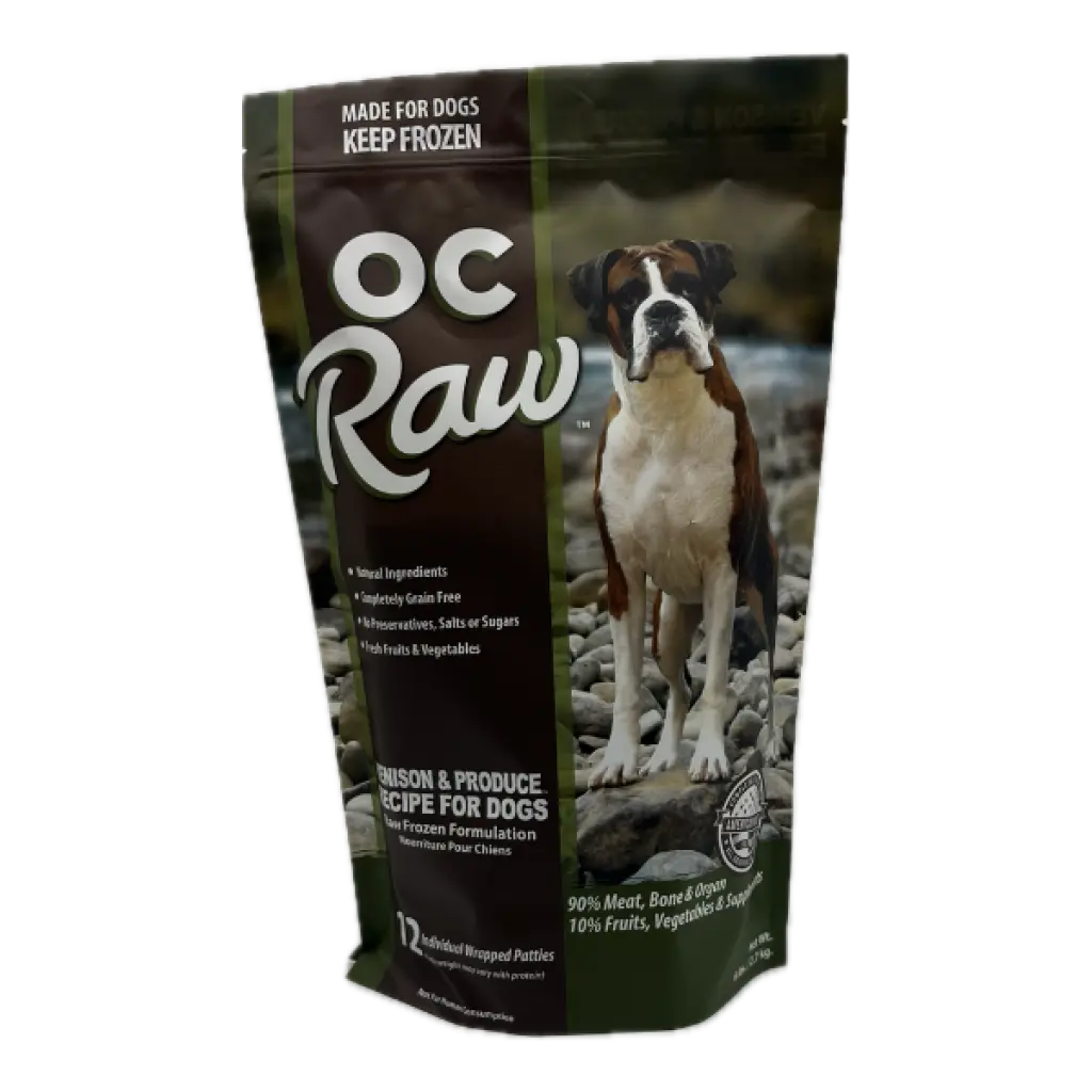 Venison, Ground Beef Bone, Venison Heart, Venison Liver, Chia Seeds, Carrots, Apples, Green Beans, Broccoli, Spinach, Acorn Squash (with seeds), Beets, Parsley, Blueberries, Cranberries, Olive Oil, Cod Liver Oil, Kelp Powder