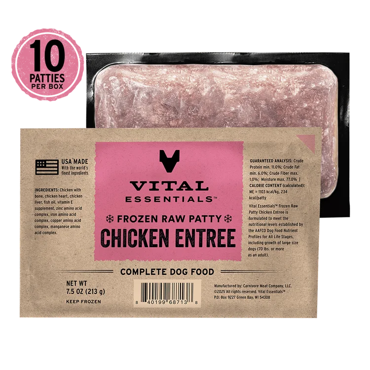 Vital Essentials Frozen Chicken Patties Dog Food - 4.7 lb Box