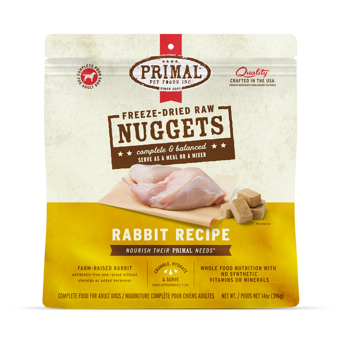 Primal Frozen Raw Canine Rabbit Formula Nuggets Dog Food - 3 lbs