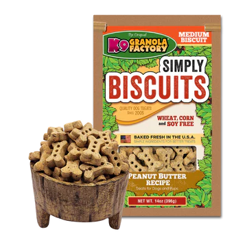 Our Simply Biscuits are packed full of flavor and hand crafted to offer a hard, crunchy treat great for promoting healthy teeth & gums. The Small version makes for an excellent training reward and by using all natural ingredients that are wheat, corn & soy free, we have created the perfect bite size treat. Scrumptious flavors that contain no preservatives, nothing artificial and Made in the USA.